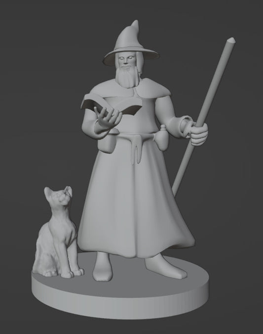 Wizard (Human Male) w/ Cat Familiar - MZ4250